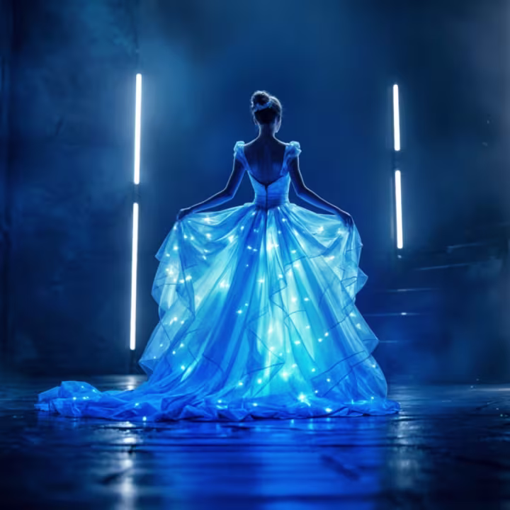 Le spectacle est présenté comme une relecture du conte de Charles Perrault. Quatre danseurs y incarnent les personnages principaux, de Cendrillon au prince en passant par les célèbres belles soeurs, dans une mise en scène qui mêle vocabulaire de la danse classique et touches contemporaines, détaille la page de l’événement sur Fever. Les costumes sont équipés de fibres lumineuses discrètes qui s’illuminent et changent de couleur au fil des tableaux, ce qui donne au plateau une esthétique proche du théâtre visuel, explique le site Lyon Secret, qui consacre un article à ce format.